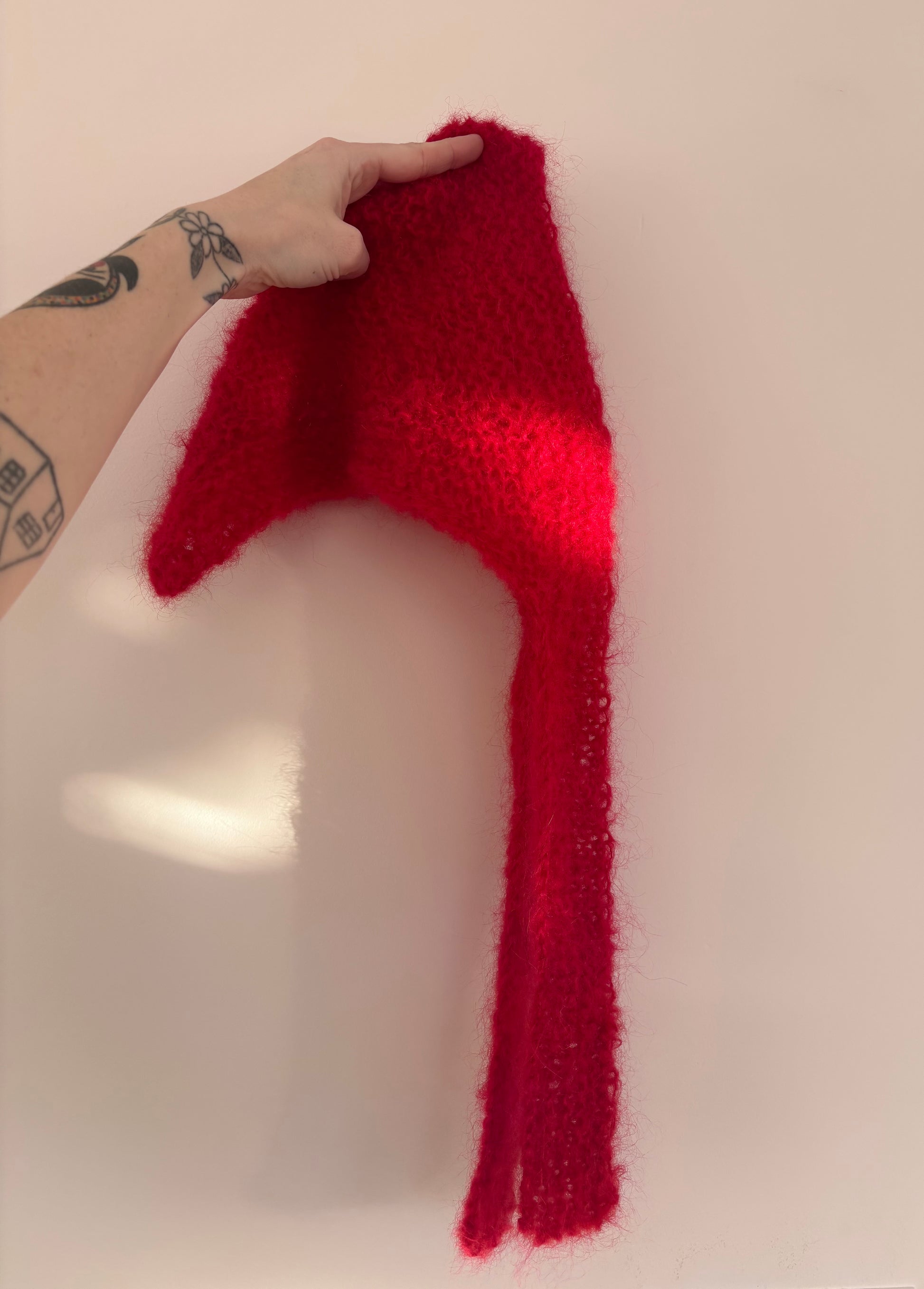 Babushka Scarves are hand knit with vintage mohair and or mohair blend yarn. Each Babushka Scarf is one of a kind. They are fluffy, fuzzy and light as cotton candy!