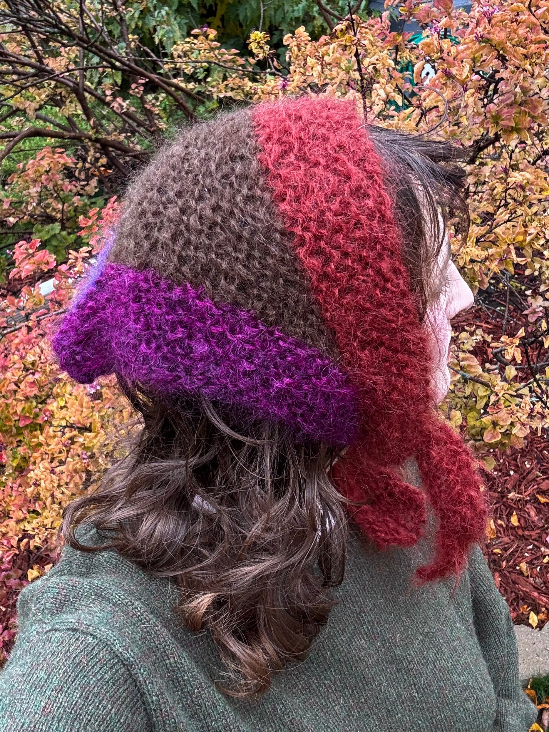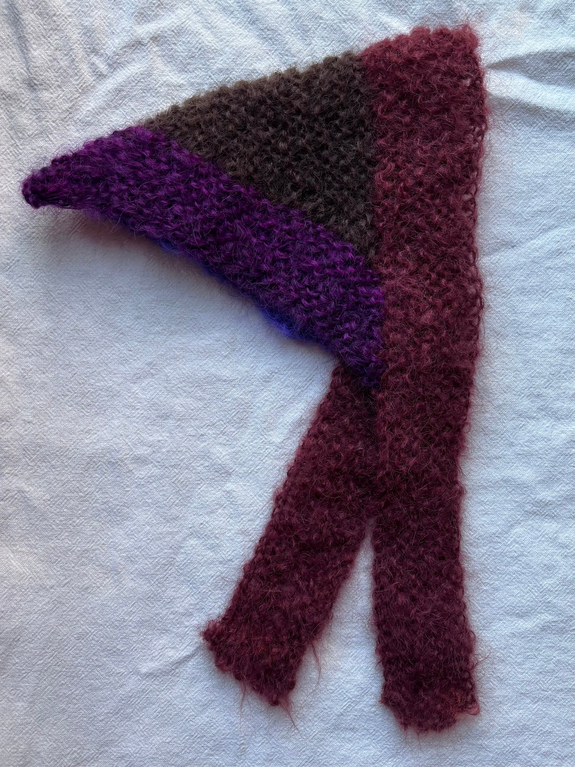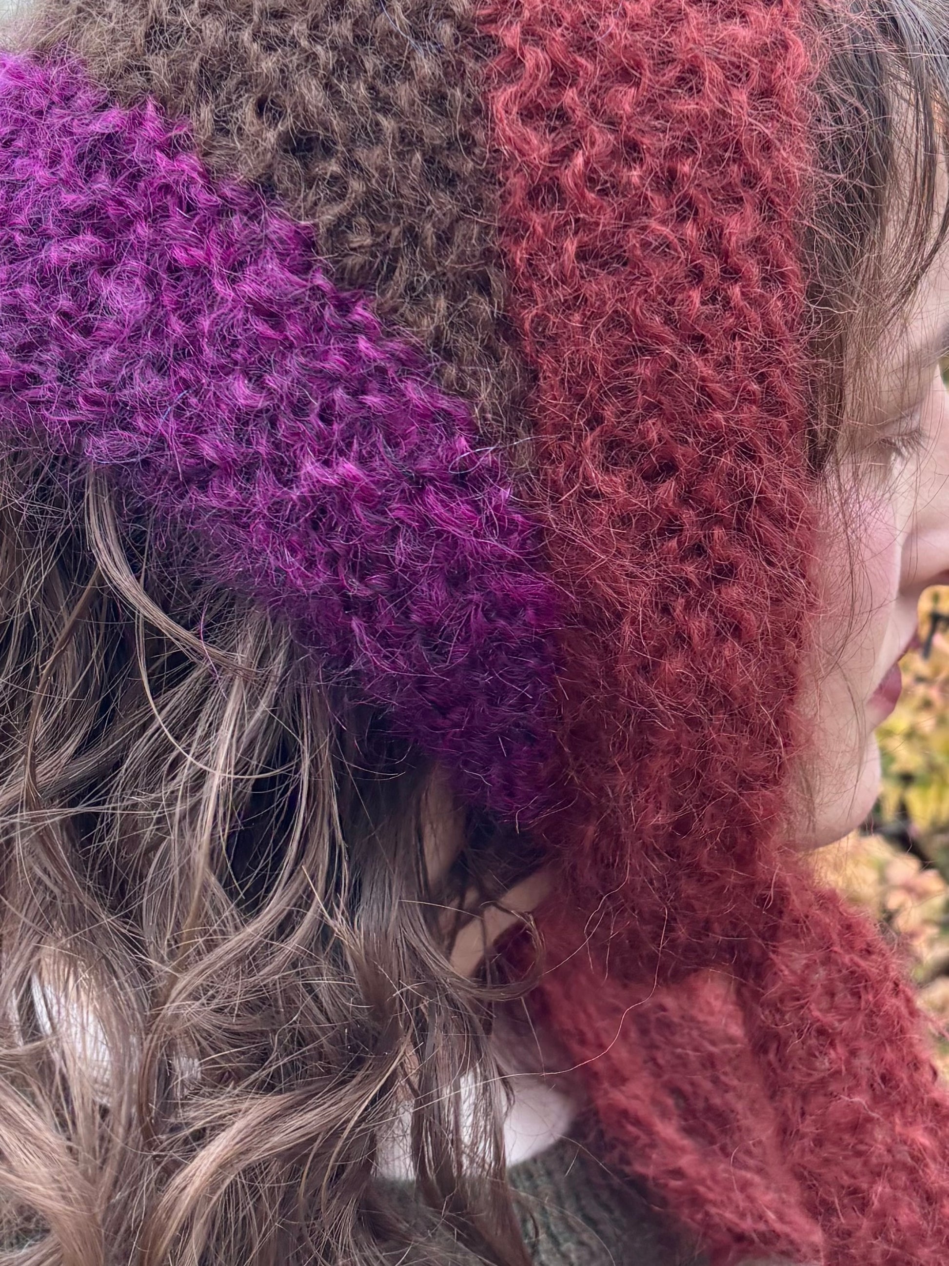 Babushka Scarves are hand knit with vintage mohair and or mohair blend yarn. Each Babushka Scarf is one of a kind. They are fluffy, fuzzy and light as cotton candy!